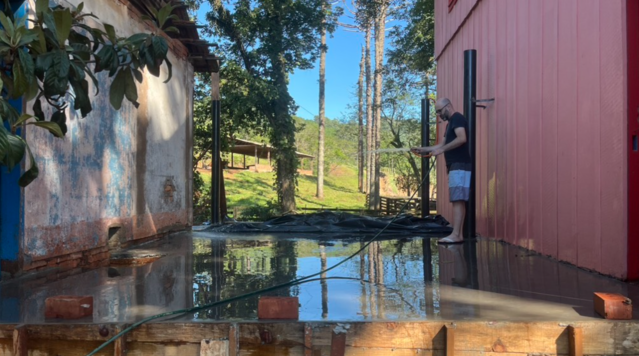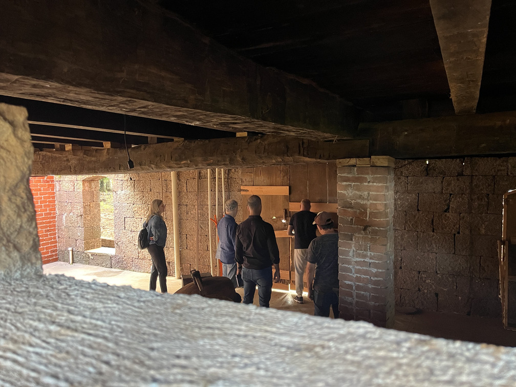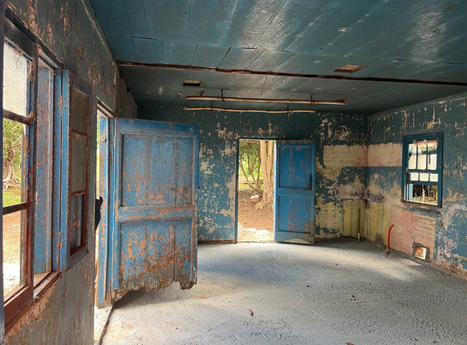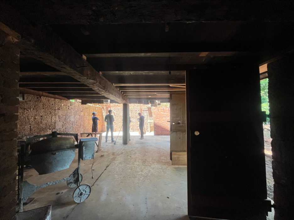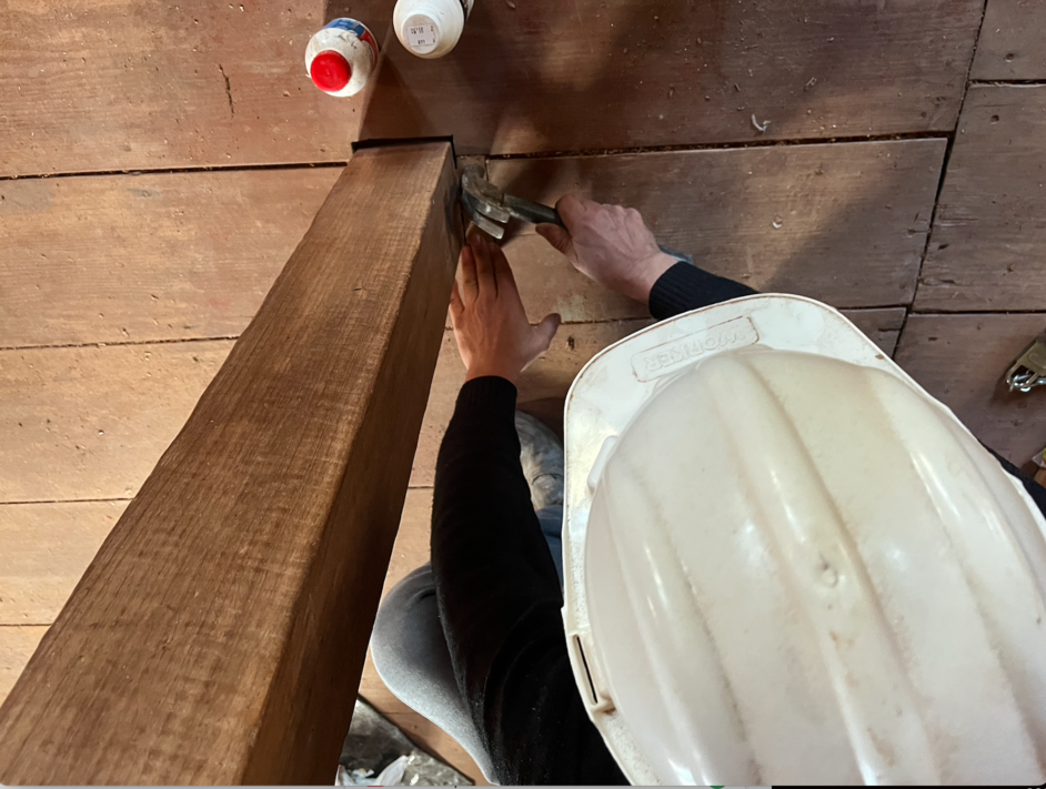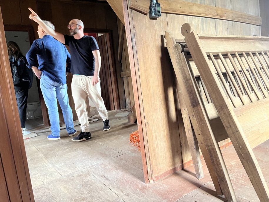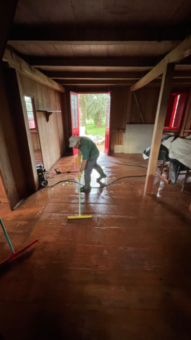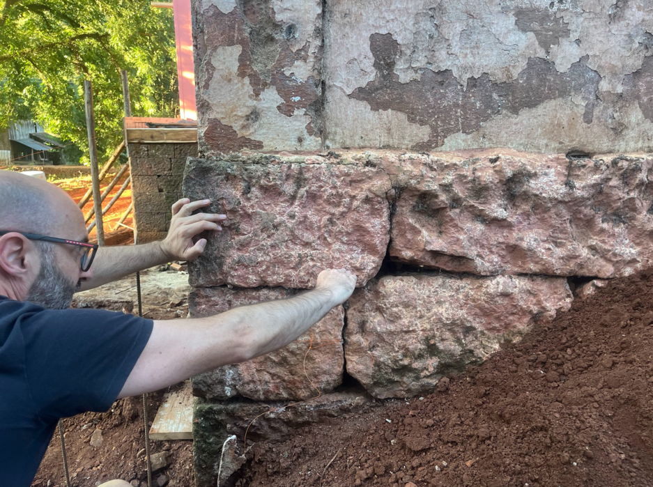 Visita Técnica e Preparação do Espaço O arquiteto Marcelo Ferraz realizou visita técnica junto à equipe responsável, orientando os encaminhamentos do restauro. Foram feitas limpezas, demolições e remoções necessárias para adequação do espaço, incluindo a preparação para acessibilidade e a reorganização dos acessos. Estrutura e Infraestrutura A obra avançou com a concretagem da laje do piso térreo, instalação de vigas, muros de arrimo e colunas de ferro fundido. Também foram implantadas as redes de água, esgoto e energia, consolidando a base estrutural da casa sem perder de vista o respeito ao traçado original. Preservação de Elementos Históricos (em andamento) Partes significativas foram retiradas para tratamento e posterior reintegração, como o forro da cozinha com sua pintura azul original. Elementos danificados, como o guarda-corpo, estão sendo refeitos com fidelidade às formas originais, preservando a memória do edifício. • Lei de Incentivo à Cultura • Pronac 237853 • Patrocínio master: Diamaju Agrícola • Realização: AAMoinhos e Ministério da Cultura - Governo Federal: Do lado do povo brasileiro.