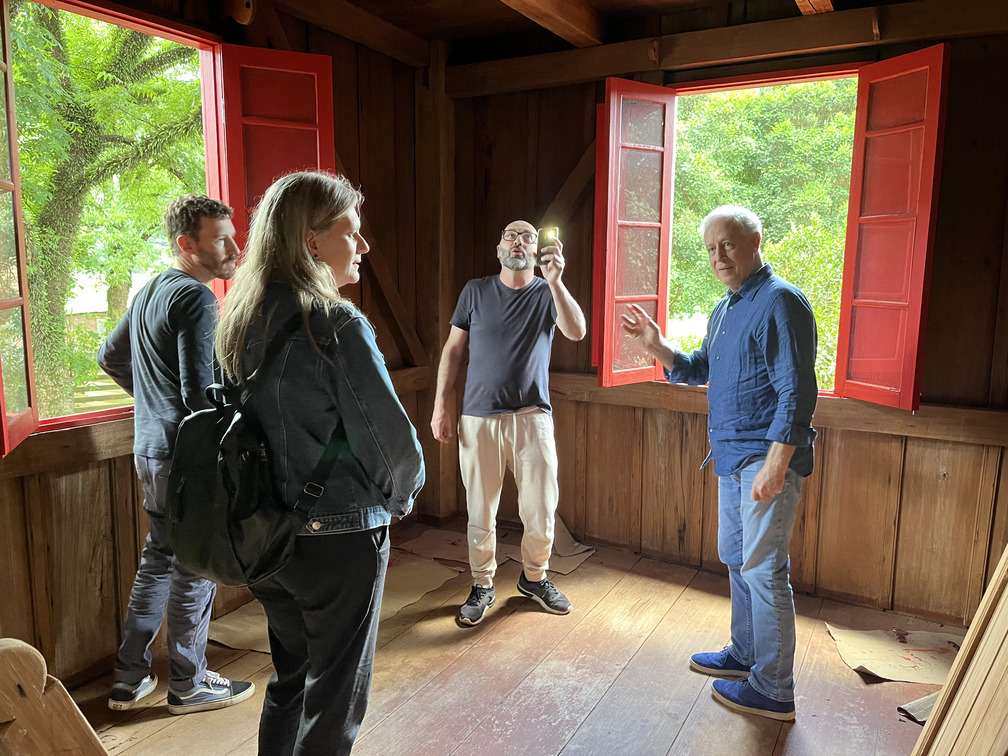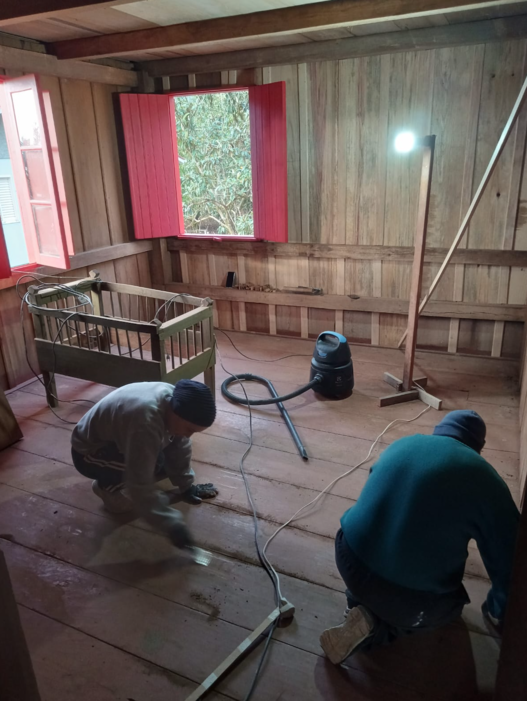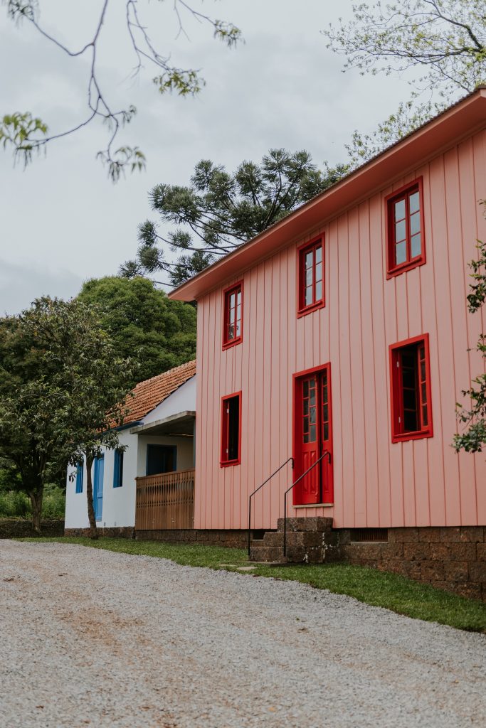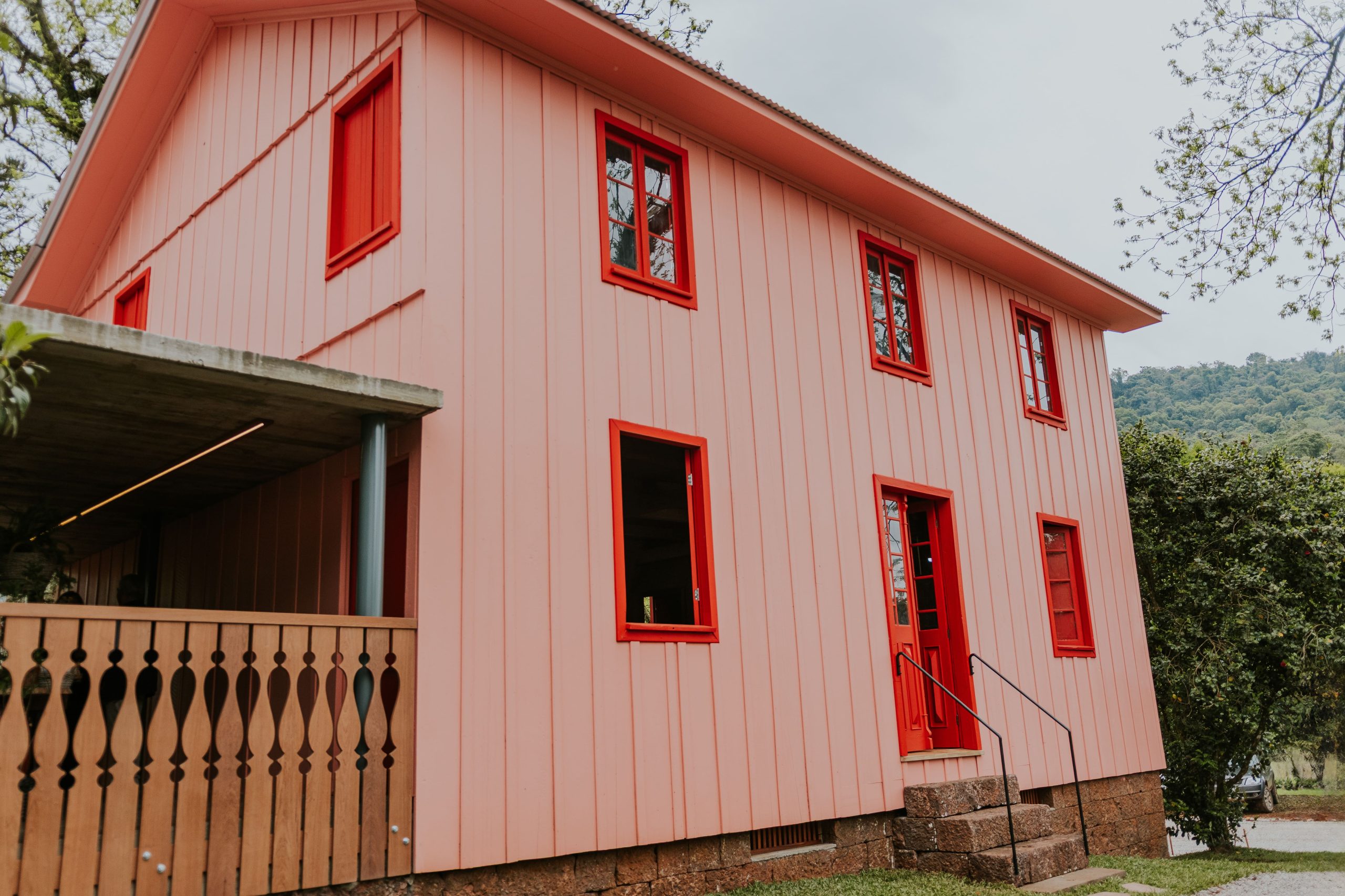 A primeira fase do projeto contemplou melhorias na casa principal, de madeira e no porão da Casa Martelli para instalação de um restaurante com capacidade para 50 pessoas. Os oito quartos da edificação abrem possibilidade para hospedagem, oferecendo ao público uma experiência bucólica de vivência no passado. A obra de restauro deste espaço foi realizada com financiamento do PRÓ-CULTURA, Governo do Estado do Rio Grande do Sul, que consistiu na limpeza do imóvel, lixamento e escovação das madeiras, das antigas aberturas, do alinhamento da estrutura e do piso e na substituição de algumas tábuas e de parte do telhado, está finalizada. “Removemos a madeira danificada nas paredes e substituímos por tábuas do mesmo tipo e espessura, assim como o telhado em aluzinco”, explica Ismael Rosset, arquiteto responsável pelo acompanhamento técnico local da obra. Já o “passadiço”, espaço que separava a cozinha da sala e dos quartos – uma característica da arquitetura colonial italiana para a proteção contra possíveis incêndios – foi removido para dar espaço a uma nova estrutura de acesso, mantendo a sua tipologia original. Testes de cor foram feitos para que o corpo da casa voltasse a ter a tonalidade rosada original e suas aberturas em vermelho. Marcello Ferraz, arquiteto da Brasil Arquitetura, escritório de São Paulo responsável pelo projeto de restauro, falou sobre a pintura. “O projeto visa o que será a casa, não o que já foi. É a liberdade das novas propostas. Mas como o tom rosado é algo que se quer respeitar, será mantido. O contraste da cor rosa com o verde da natureza é uma decisão de projeto que dialoga com o passado”, analisa. • Patrocínio Master: Diamaju Agrícola • Patrocínio: Agraz Refrigeração e Agrodalla • Realização: AAMoinhos • Financiamento: PRÓ-CULTURA, Governo do Estado do Rio Grande do Sul.